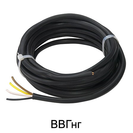 Кабель ВВГнг — небронированный защищенный кабель со сплошными медными жилами в ПВХ изоляции.